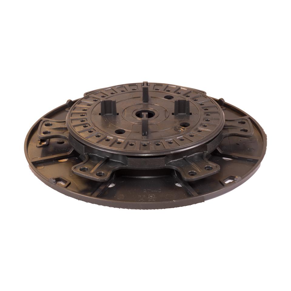 Dolny talerz o średnicy 195 mm stabilnie rozkłada nacisk na podłoże. Górny talerz o średnicy 125 mm tworzy pewną podstawę dla płyt tarasowych. Dodatkowo na górnym talerzu znajdują się cztery elementy dystansujące, które zapewniają stałą szczelinę 5 mm pomiędzy układanymi płytami.