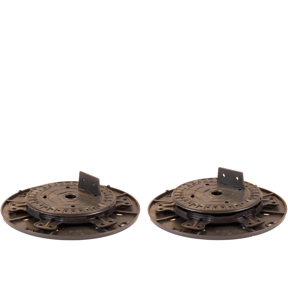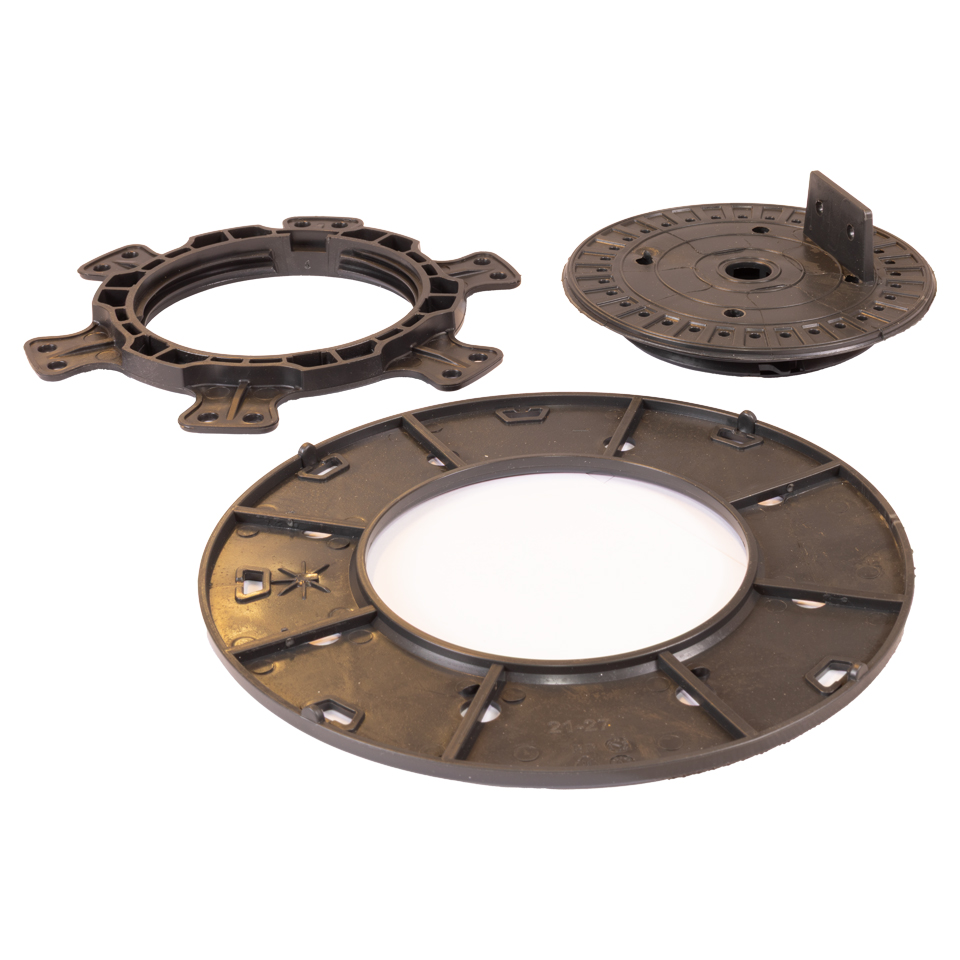 Dolny talerz o średnicy 195 mm stabilnie rozkłada nacisk na podłoże. Górny talerz o średnicy 125 mm tworzy pewną podstawę dla legara. Dodatkowo na górnym talerzu znajduje się element montażowy o wysokości 25 mm, który umożliwia przytwierdzenie legara do wspornika za pomocą dwóch wkrętów.