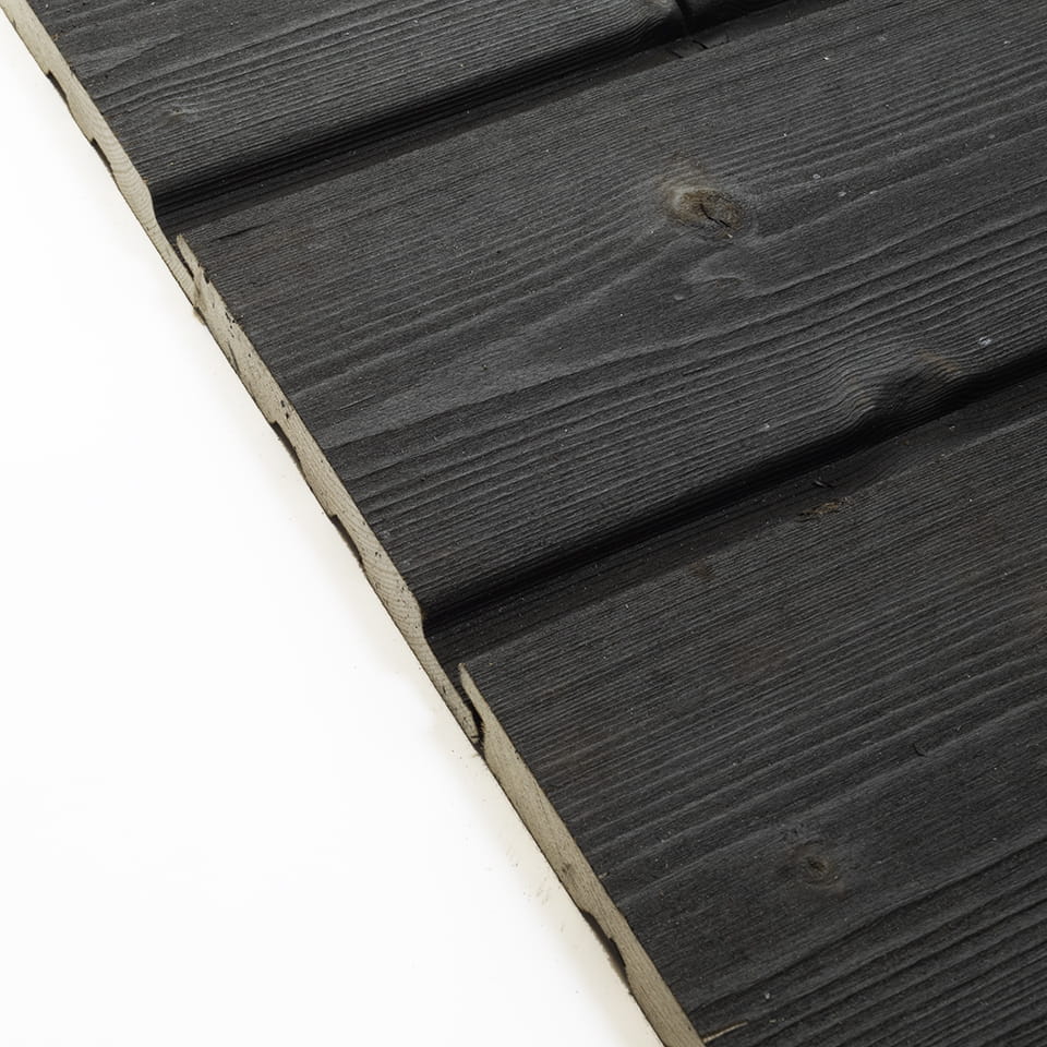 Deska elewacyjne ze świerku wypalana tradycyjną japońską techniką Shou Sugi Ban.