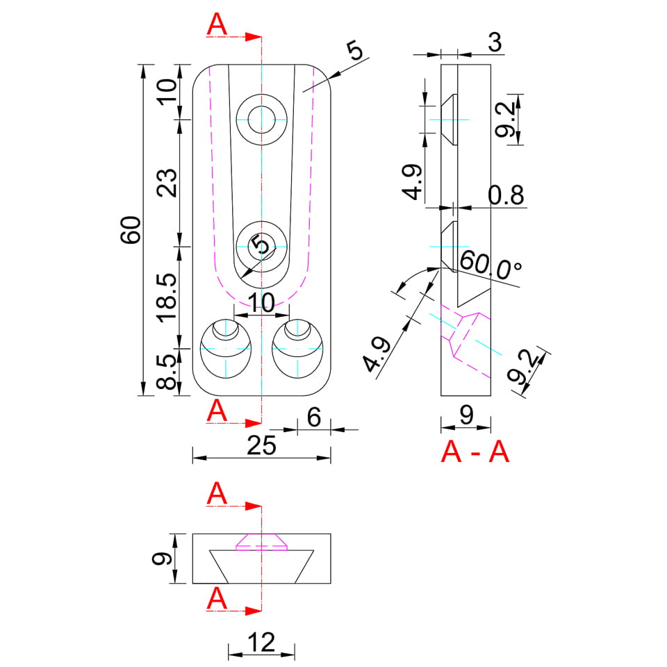 Wymiary (szer. x wys. x gł.): 25 x 60 x 12 mm