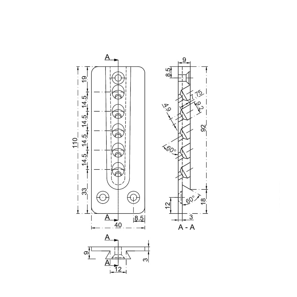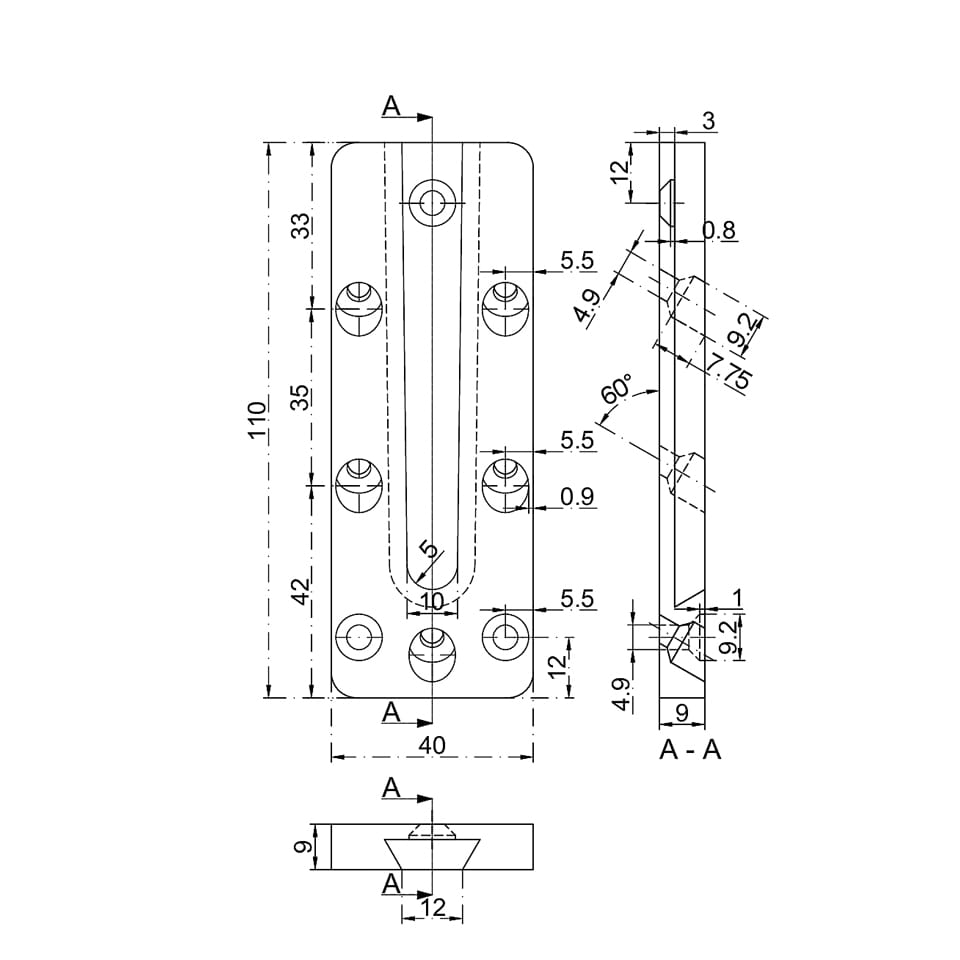 Wymiary (szer. x wys. x gł.): 40 x 110 x 12 mm