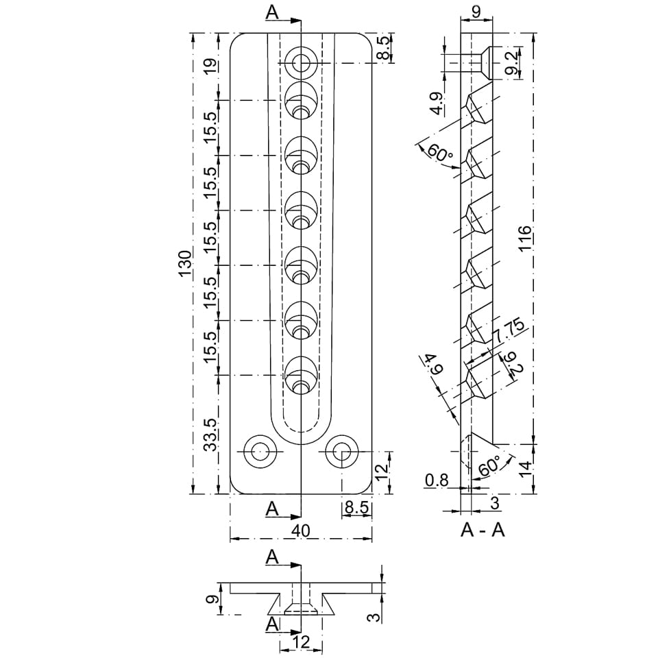 Wymiary (szer. x wys. x gł.): 40 x 130 x 12 mm