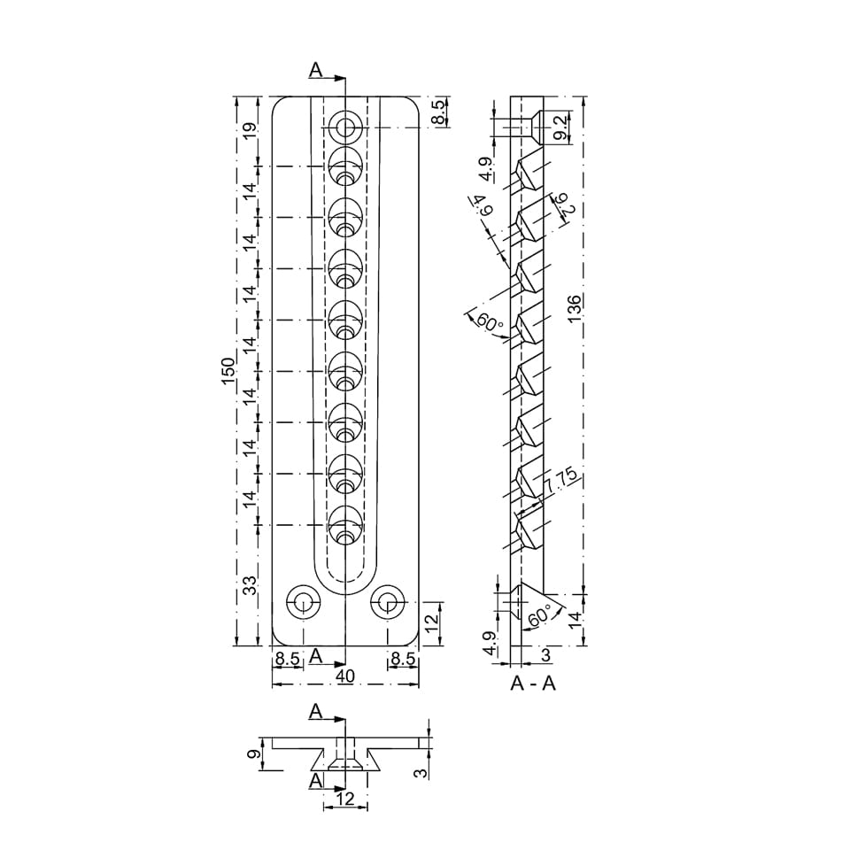 Wymiary (szer. x wys. x gł.): 40 x 150 x 12 mm