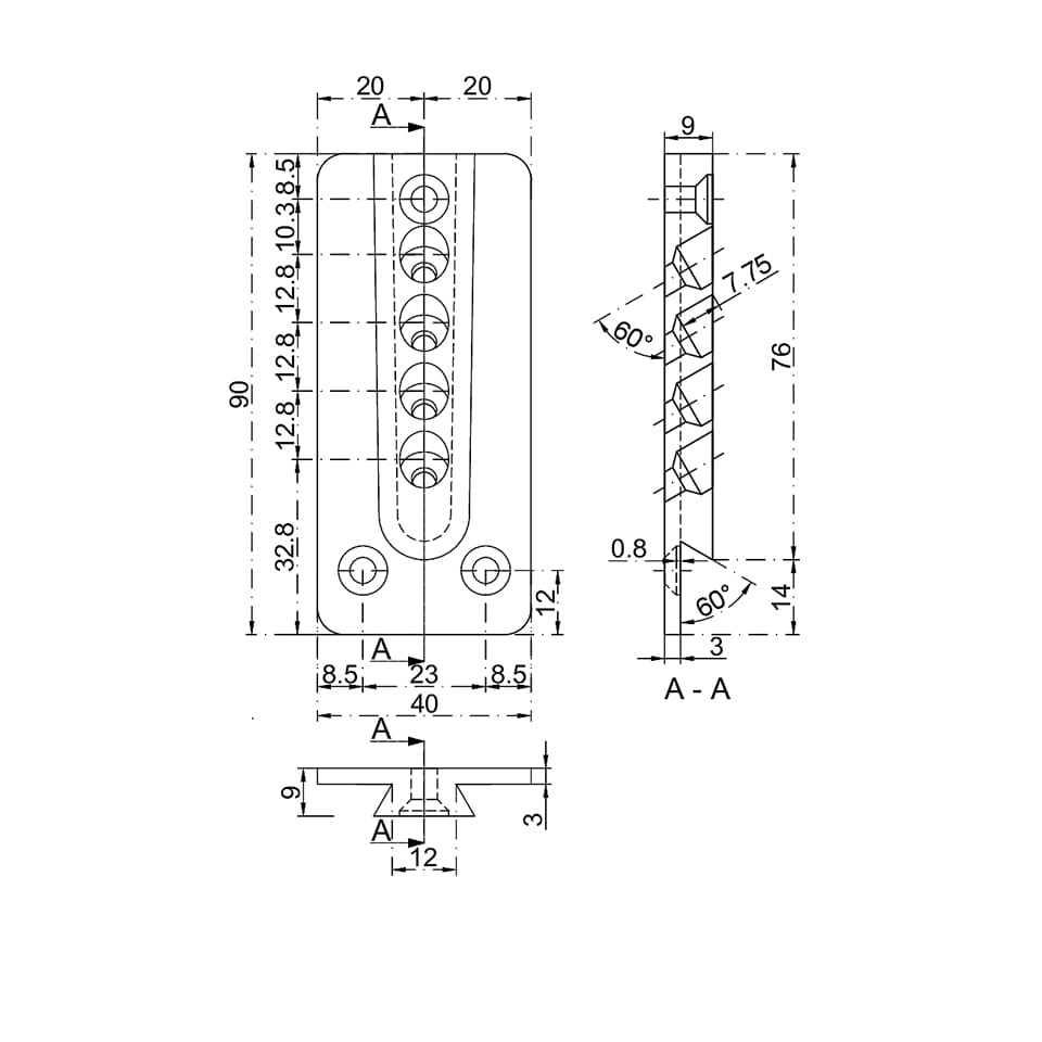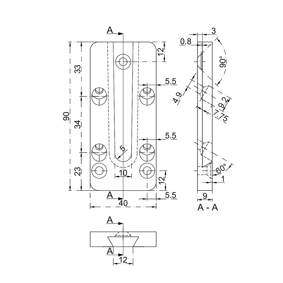 Wymiary (szer. x wys. x gł.): 40 x 90 x 12 mm